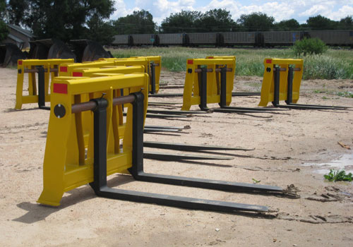 They are used to handle different types of pipe, lumber, logs, hay bales, palatalized materials and many other applications. Visibility is excellent through the fork carriage from the operator’s seat to the load being handled. Heavy duty tine locks are standard to lock the tines back against the carriage. OEM Pin-on Mounts, Rylind Wedge-loc Coupler, Pin-loc Coupler, JRB, Volvo, Deere, CAT, ACS, and other coupler systems are available for all fork carriages.