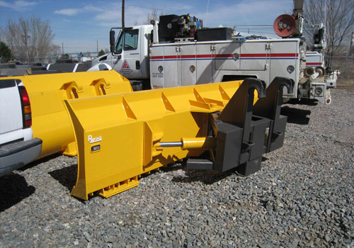The cutting edges are three piece center punched reversible dozer type with end bits. Angel Dozer Blades are available in heavy duty or severe duty configurations, double thick wall square tube a-frame and 3″ center hinge pin for added strength. Moldboard Mounted heavy duty road oscillation, blade mounted shim adjustable skid shoes, and bolt-on extended snow guards are available.