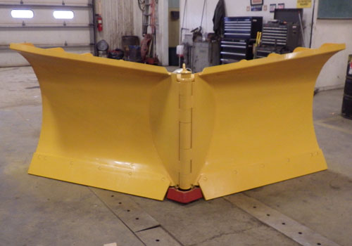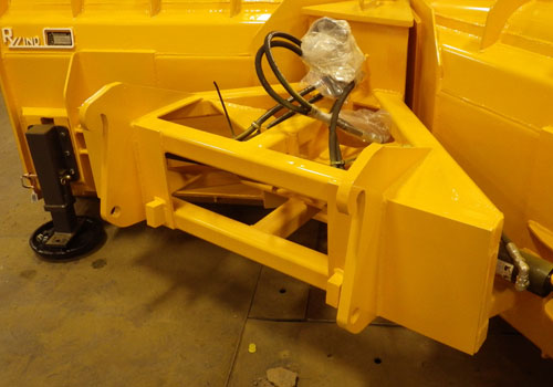 Rylind MDP Plows come in standard lengths of 8′, 9′, and 10′ with a 36″ tall moldboard, and a heavy duty 2″ center hinge pin. Tapered extended snow shields and cross over relief valves are standard equipment. These plows work great with 1-2 yard Wheel Loaders and smaller Motor Graders that have two auxiliary valves to operate the plow. Optional mushroom skid shoes, Oscillation, and Hydraulic/Electric selector valves to split a single valve into two operations are available.